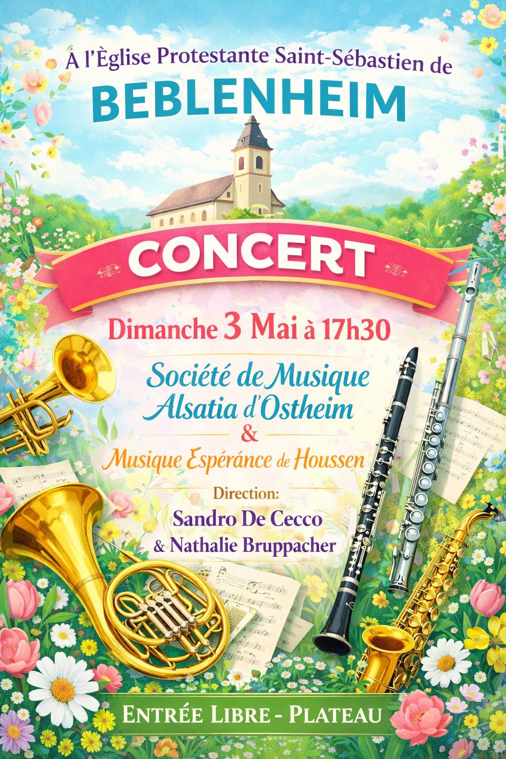 La Société de Musique Alsatia d'Ostheim & Musique Espérance de Houssen vous invitent à assister à leur concert qui aura lieu dans l'Église Prostestante Saint-Sébastien de Beblenheim.